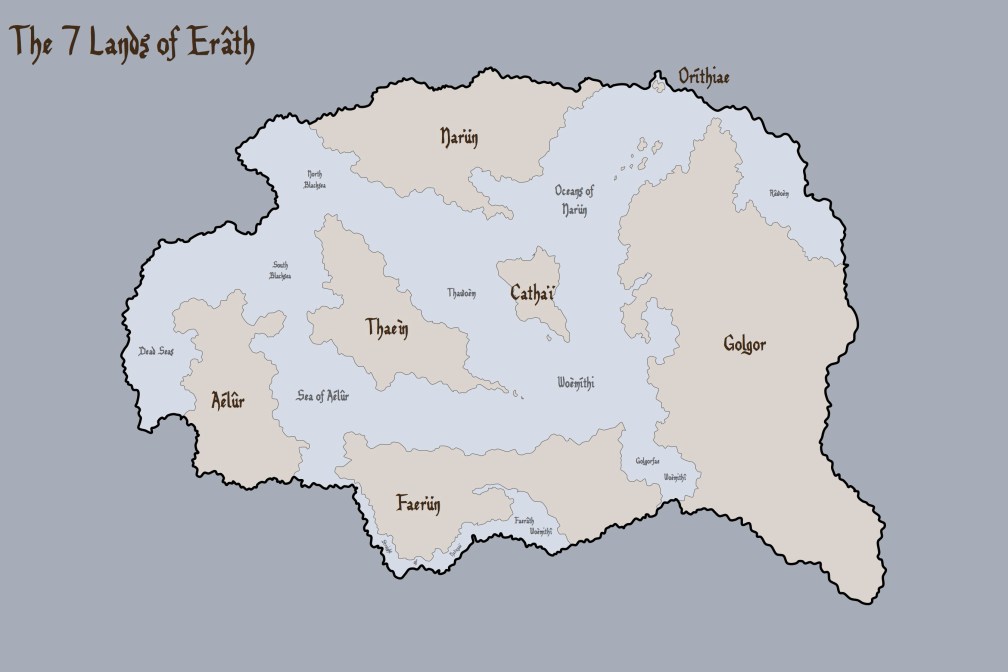 The Redemption of Erâth: New Maps of Erâth I’ve been working on creating a few more maps of Erâth, to help people get orientated in their way around Consolation! These three are maps of all of Erâth, the land of Thaeìn, and Consolation, respectively. Enjoy! Click to enlarge. Click to enlarge. Click to enlarge. share this! Click to email a link to a friend (Opens in new window) Email Click to share on X (Opens in new window) X Click to share on Facebook (Opens in new window) Facebook Click to share on Pinterest (Opens in new window) Pinterest Click to share on Tumblr (Opens in new window) Tumblr Like Loading... Related