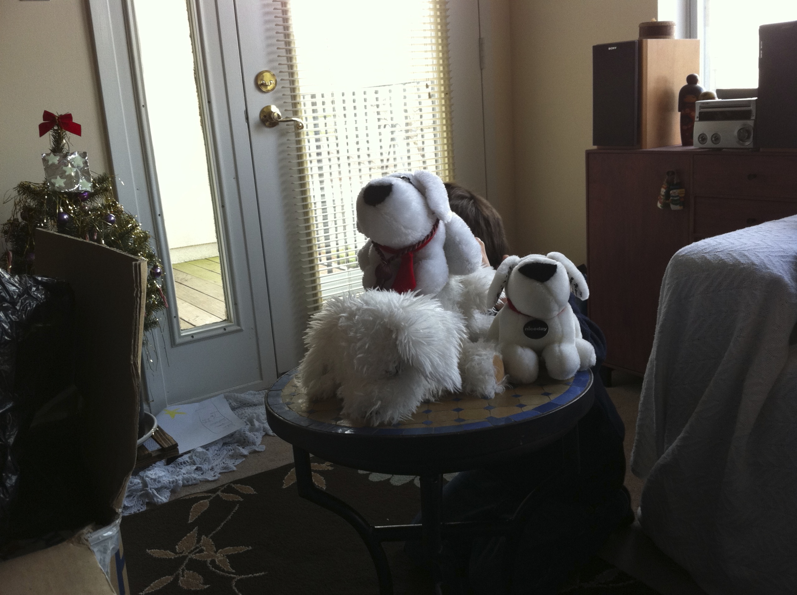 Daily Photo: December 15, 2010 All ready for Christmas…wait! Who’s that hiding behind them? Our first Christmas in New Jersey. We only had a small apartment at the time, so our tree was ever so small. Still – in the immortal words of Red Dwarf, wherever you go, there you are. share this! Click to email a link to a friend (Opens in new window) Email Click to share on X (Opens in new window) X Click to share on Facebook (Opens in new window) Facebook Click to share on Pinterest (Opens in new window) Pinterest Click to share on Tumblr (Opens in new window) Tumblr Like Loading... Related