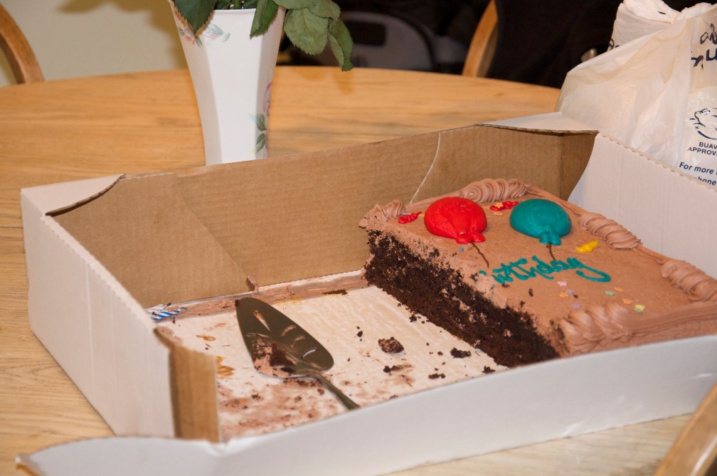 Daily Photo: March 14, 2009 What’s left after a five-year-old’s party. What do you get if you cross a giant cake with a horde of five-year-olds? Not much cake. Camera: Nikon D90 ISO: 800 Aperture: ƒ/5.3 Shutter speed: 1/60 share this! Click to email a link to a friend (Opens in new window) Email Click to share on X (Opens in new window) X Click to share on Facebook (Opens in new window) Facebook Click to share on Pinterest (Opens in new window) Pinterest Click to share on Tumblr (Opens in new window) Tumblr Like Loading...