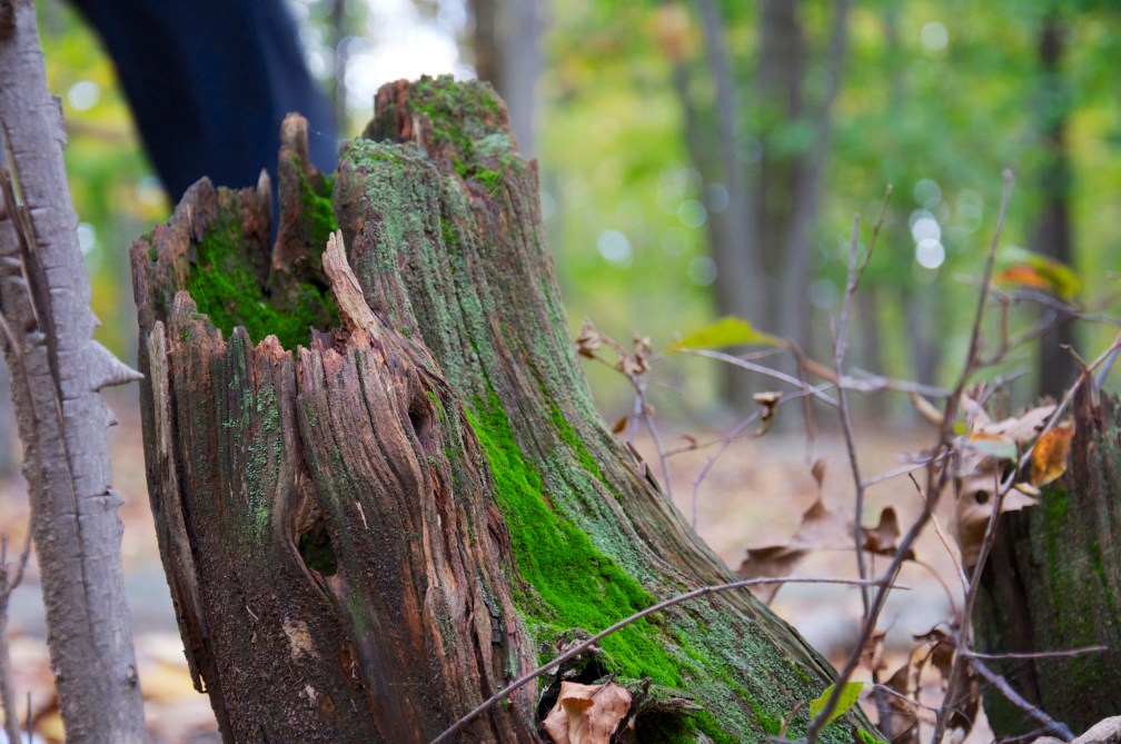 I was captured by the vividness of the moss on this stump; it almost seems to be glowing.