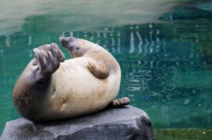 Outside, for there was an outside, were penguins. Imagine that! It turns out that out of the seventeen known species of penguin, only two actually live in arctic climates! This, naturally, leads to the question: what’s wrong with them? But another special treat awaited us out there, and it was a precious reminder of our departed feline family member, for he was all but cat in nature: a seal! Look at his hands and feet – those fingers are still there, and he even has little claws. This is no passive creature – he is a seal of prey!