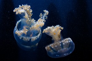 And oh, there were so many other marvels of the sea to be seen. So many creatures, so many colors…a precious zebra fish in his black and white tuxedo; a stonefish lurking sneakily among the rocks; anemones, resplendent in crimson and magenta, so peaceful and deceptive, seeking prey in their own, silent way. And most beautiful of all…the jellyfish. What an astonishing marvel these are – so ephemeral and frail, yet stunning, and deadly; a reminder of the true alien forms of the deep sea.