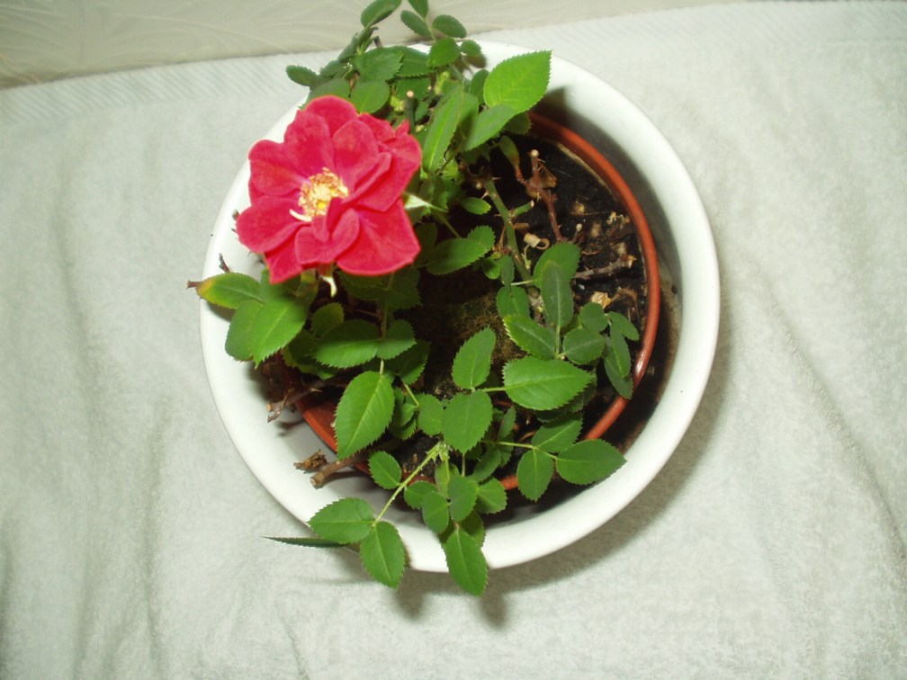 Another credit to my wife, on two counts: one for taking the photo, the other for producing the subject. I don’t know how she took such good care of this delicate miniature rose; I ended up killing it.