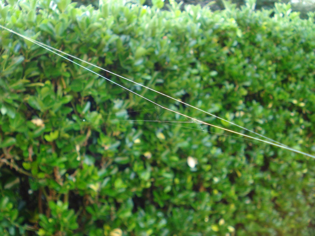 I woke on a misty September morning to find the beginnings of a web, started fresh in the night. The photo didn’t come out too well, but it astonishes me that a spider managed to stretch its silk over five feet from the bush to the hedge.